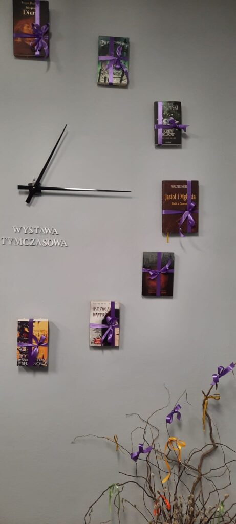 Pofantazjujcie z nami i książkami, które mogą zaspokoić potrzeby nawet bardzo wybrednego czytelnika. Na naszej TYMCZASOWEJ wystawie, majowe fantazjowanie. Wstążeczki w kolorze bzu pięknie ozdabiają książki o niebanalnej fantastycznej tematyce. Tym razem Fantasy – książki, w których nadprzyrodzone motywy, bohaterowie, czas, miejsca akcji, postaci i okoliczności zdarzeń dopełniają się nawzajem i odkrywają przed nami nieznane światy. Czy wiecie, że pierwiastki mityczne i inne, które stanowią źródło fantasy i jego licznych podgatunków, były częścią niektórych największych i najbardziej sławnych dzieł literatury takich jak „Epos o Gilgameszu” i innych najdawniejszych zapisów znanych ludzkości. Od „Odysei” po „Beowulfa”, od „Mahabharaty” do „Księgi tysiąca i jednej nocy”, od „Ramajany” do „Podróży na Zachód”, i od „Legend arturiańskich” i średniowiecznych romansów po poemat epicki „Boska komedia” – fantastyczne opowieści o odważnym bohaterze i bohaterce, o strasznych, śmiercionośnych smokach i tajemniczych światach, inspirowały wielu słuchaczy i autorów. W tym sensie historia fantastyki i historii literatury są nierozerwalnie związane. Istnieje wiele dzieł, gdzie granica pomiędzy fantastyką a innymi gatunkami jest zatarta, a pytanie czy autorzy wierzyli w możliwość istnienia opisywanych cudów w utworach takich, jak „Sen nocy letniej” czy „Pan Gawen” i „Zielony Rycerz”, sprawia, że trudno rozróżnić, gdzie i kiedy fantastyka w nowoczesnym sensie ma swój początek.