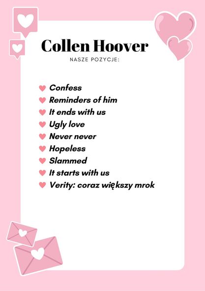 Klub Książki Klaudynek spotkał się tym razem po to, aby porozmawiać na temat twórczości Colleen Hoover. Spotkanie trwało naprawę długo i wiele się w tym czasie wydarzyło!! Doszliśmy to wielu wniosków i świetnie się przy tym bawiliśmy :)) Poniżej znajdziecie zdjęcia z spotkanie i grafikę z książkami, które przeczytaliśmy.