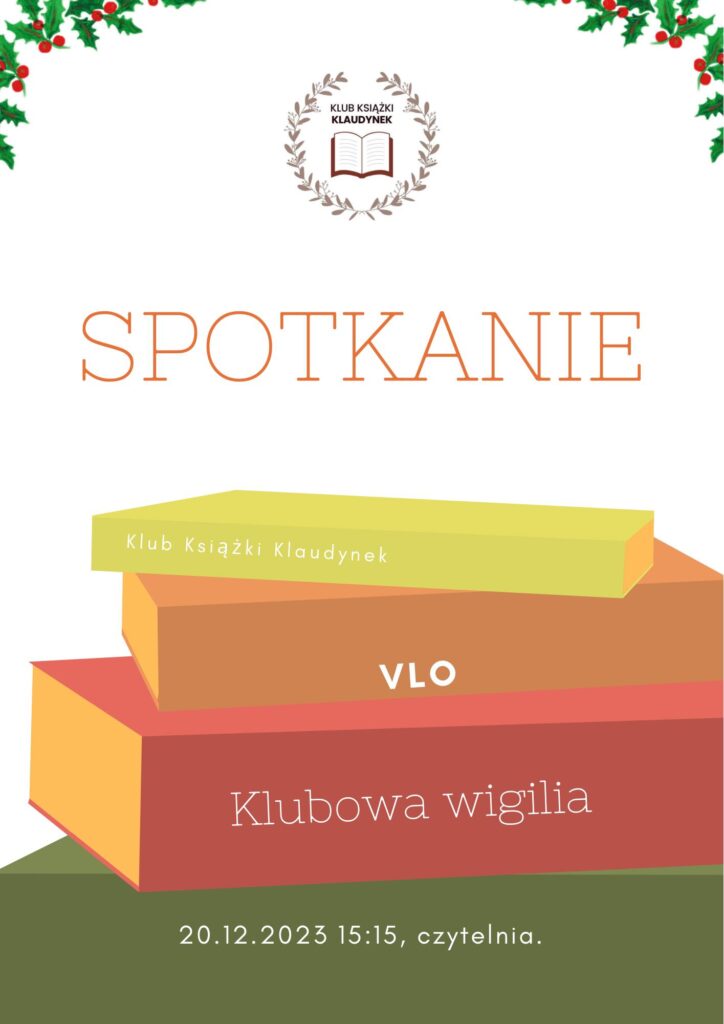 Kochani czytelnicy, wielkimi krokami zbliżają się święta, dlatego już w te środę spotykamy się na wspólnej wigilii klubowej. Liczymy na świąteczną atmosferę i miło spędzony czas. A w akompaniamencie klimatycznych piosenek i rozmów chcemy wspólnie podsumować, zorganizowaną przez nas świąteczną akcję charytatywną!! Czekamy na Was!!