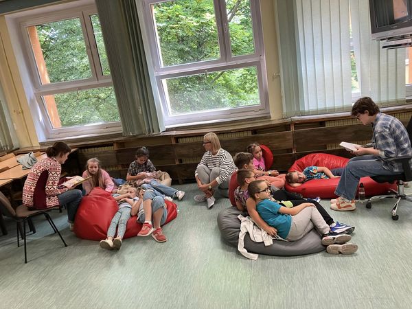 Z okazji XXIII Ogólnopolskiego Tygodnia Czytania Dzieciom mieliśmy w naszej bibliotece bardzo miłych gości. Byli to uczniowie klasy 2a ze Szkoły Podstawowej nr 5 wraz z wychowawczynią p. Magdą. Dziewczyny z Klubu Książki Klaudynek (w pewnym momencie dołączył też do nich Piotr z kl. 3d) czytały im wiersze Doroty Gellner, Juliana Tuwima, Ireny Suchorzewskiej oraz fragmenty „Mikołajka” . Dzieci mogły się zrelaksować przy spokojnej muzyce, a na koniec wspólnie wykonaliśmy pamiątkę ze spotkania. Naszym gościom tak spodobał się pobyt i zajęcia w naszej bibliotece, że przedyskutowaliśmy z nauczycielami kontynuację współpracy