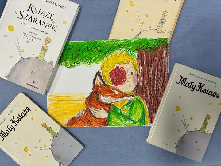 Jest to również doskonała okazja, aby ogłosić, że zwyciężczynią naszego kwietniowego konkursu plastycznego została Kinga z klasy 2I, która stworzyła pracę inspirowaną „Małym Księciem”![]()